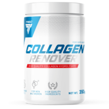 Trec Collagen Renover zawiera łatwoprzyswajalny hydrolizat kolagenu uzupełniony o wit. C, który wspomaga regenerację tkanki łącznej. Włókna kolagenowe spajają i uelastyczniają struktury stawów oraz skóry, zapewniając im odporność na odkształcenia mechaniczne. Z wiekiem spada produkcja kolagenu w organizmie, co może być jedną z przyczyn przyspieszonego zużycia chrząstek stawowych oraz utraty elastyczności skóry. Trec Collagen Renover dedykowany jest jako uzupełnienie diety w kolagen osobom narażonym na przeciążenia stawów, w tym sportowcom, ludziom z nadwagą i w podeszłym wieku.